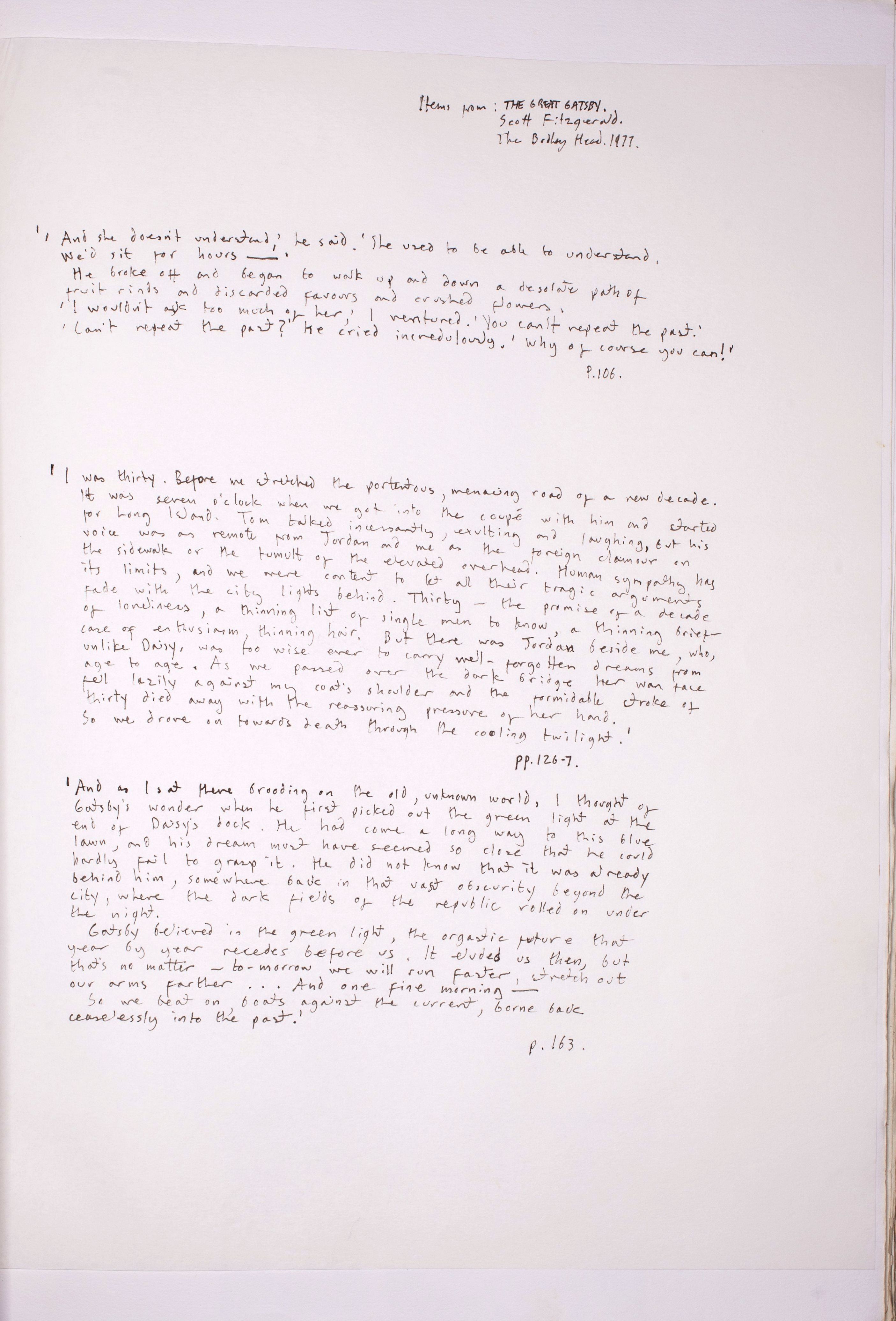 p124. Notes on: Fitzgerald, The Great Gatsby.