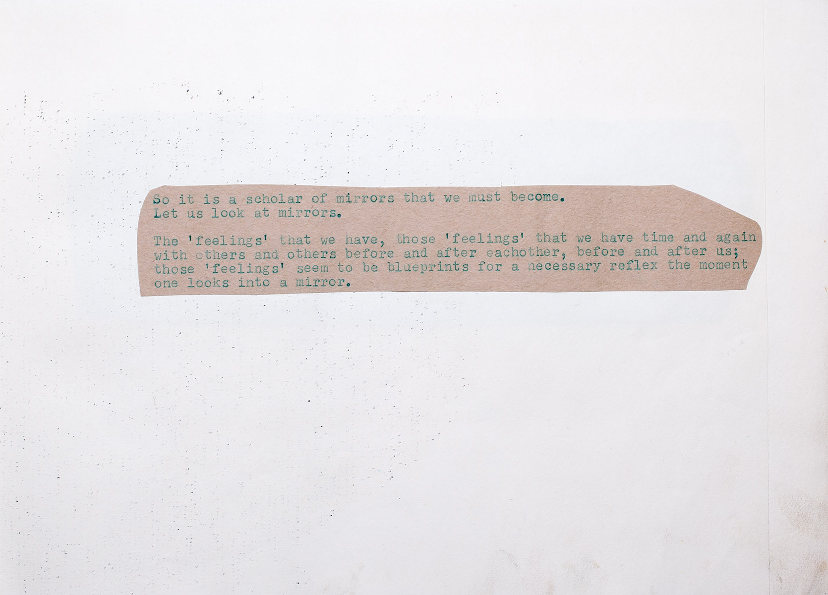 The ‘feelings’ that we have, those ‘feelings’ that we have time and again with others and others before and after each other, before and after us; those ‘feelings’ seem to be blueprints for a necessary reflex the moment one looks into a mirror.