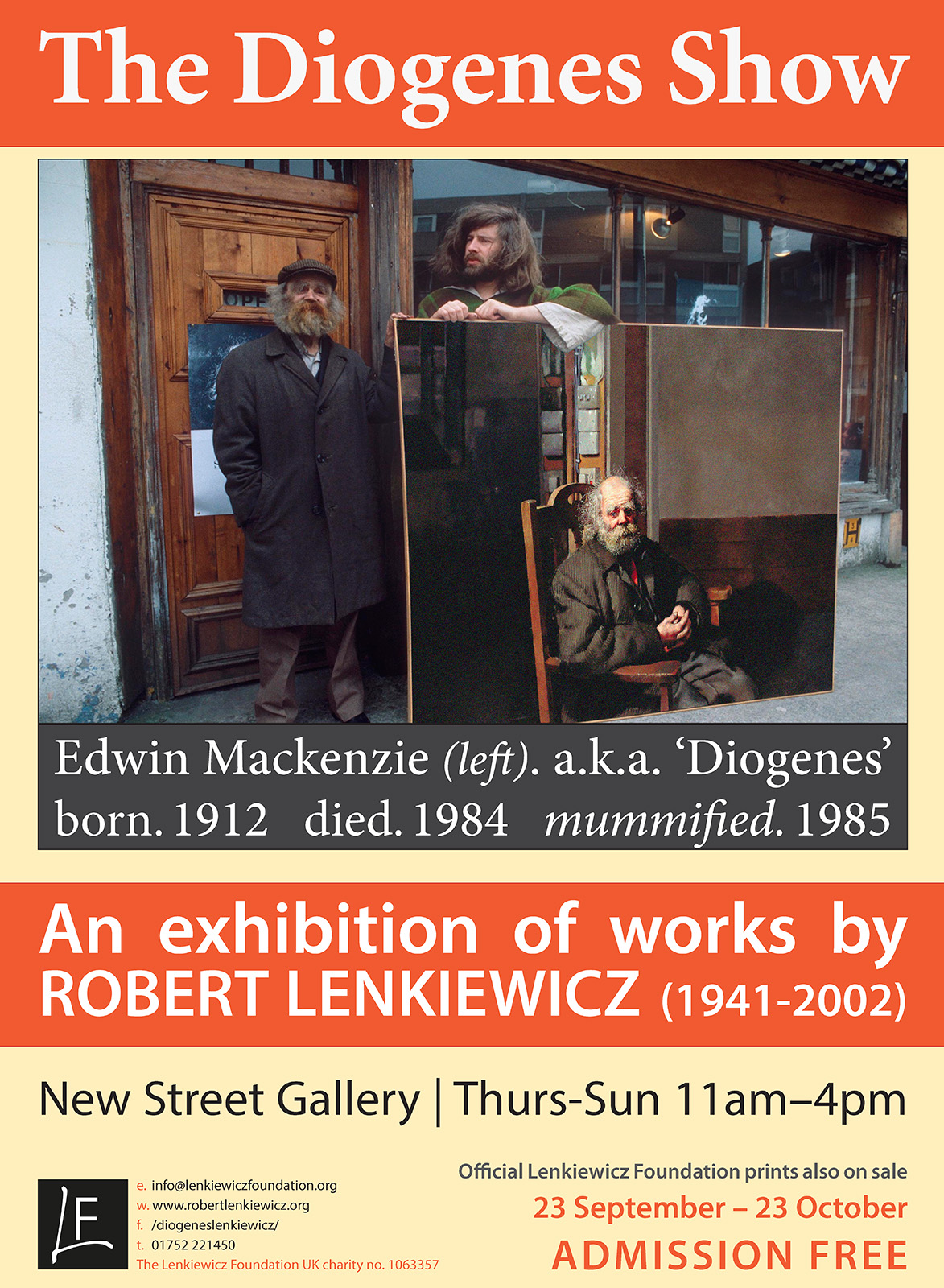 The Diogenes Show marks the 40th anniversary of their collaboration in The Masterpiece Museum & The Diogenes Con Show, Lenkiewicz’ ironic look at art and commerce. For practical reasons the expertly embalmed remains of Diogenes cannot make a personal appearance as the ultimate memento mori (‘remember, you will die’) at this venue. However, it is hoped that new technologies – and traditional methods like body-casts – will blur the line between art and artefact.