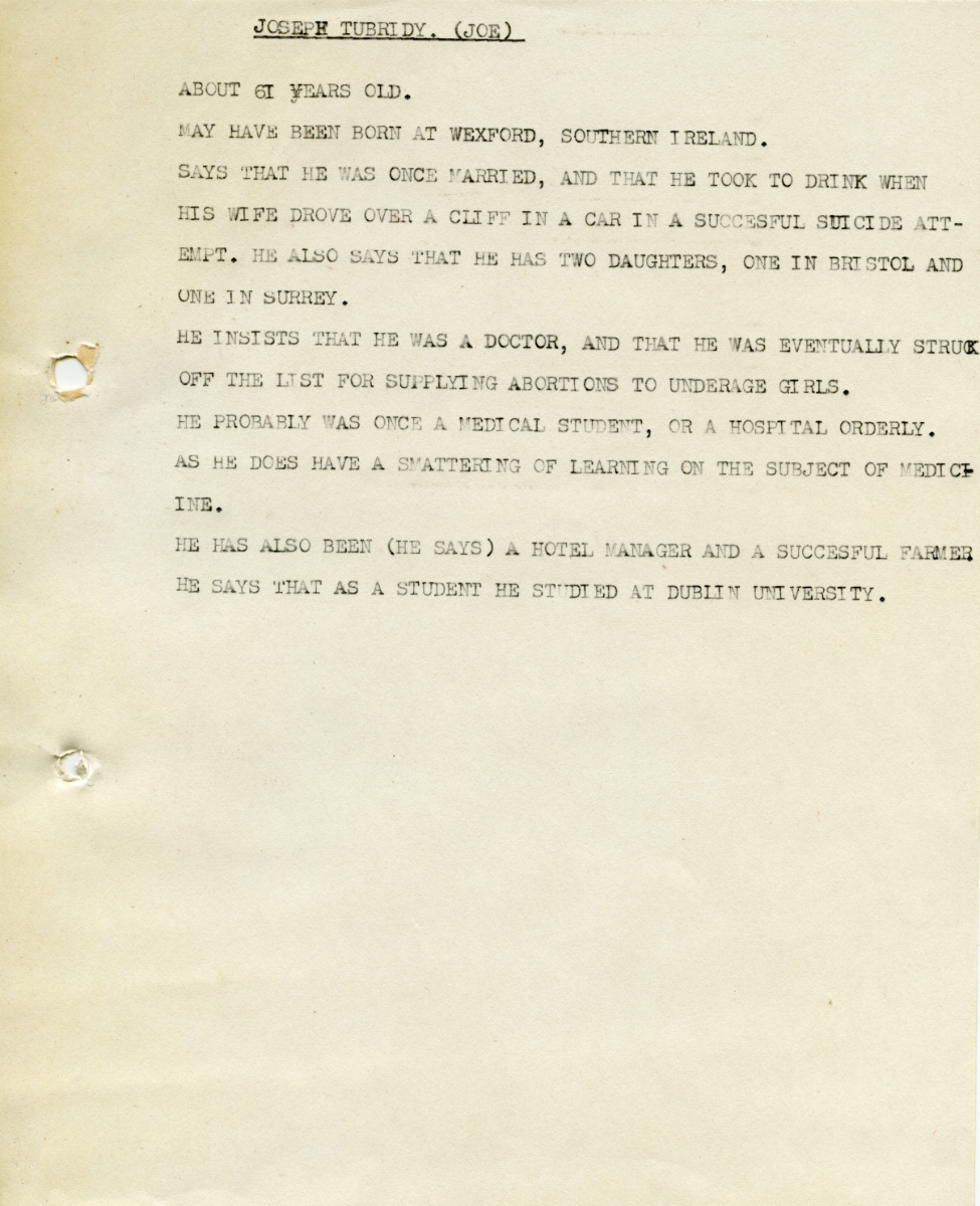 item 118 JOSEPH TUBRIDY. (JOE). 255 x 205 mm typed sheet