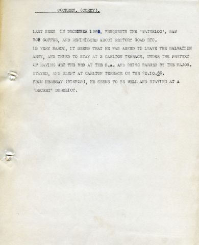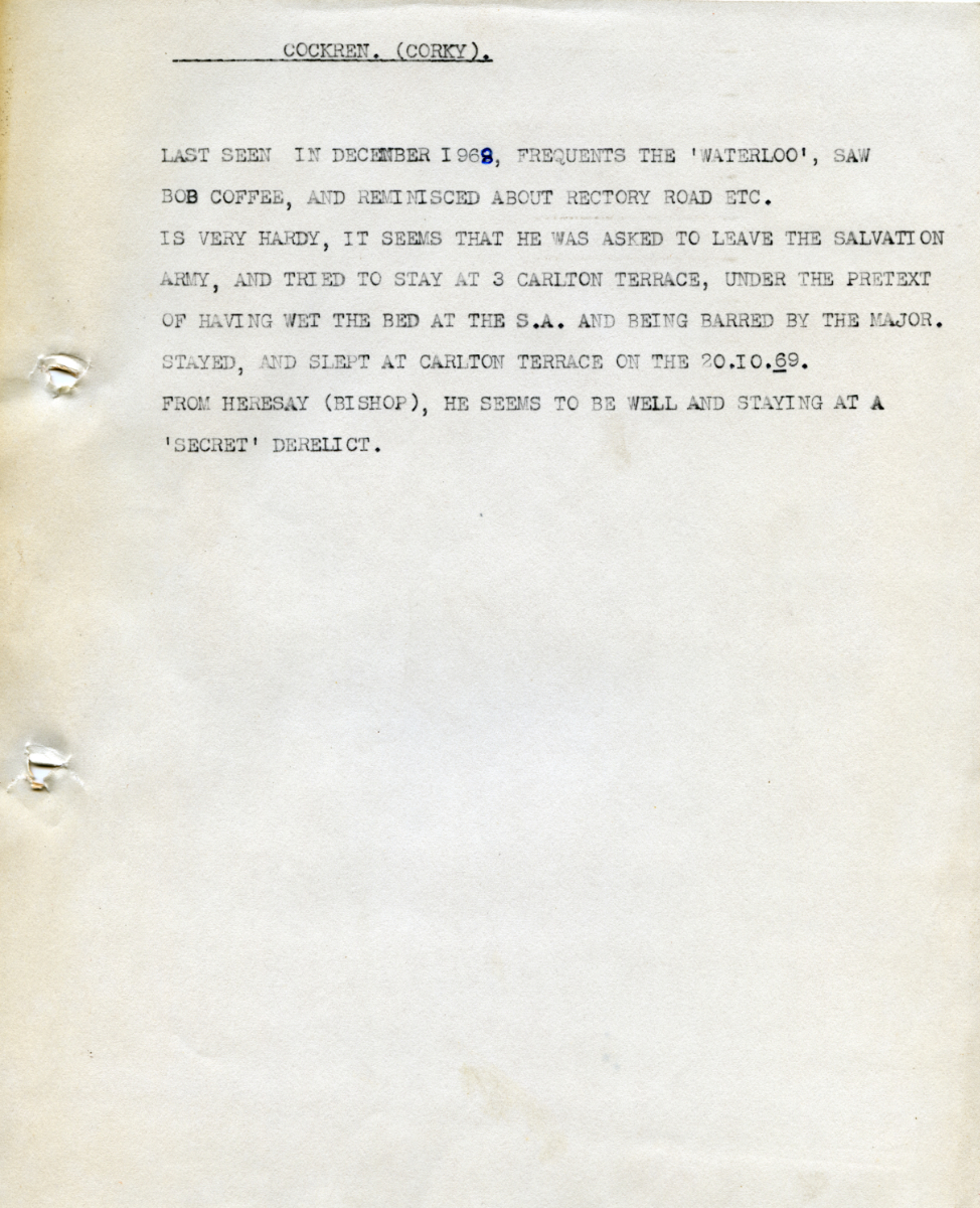 item 16 COCKREN. (CORKY) 257 x 205 mm typed sheet