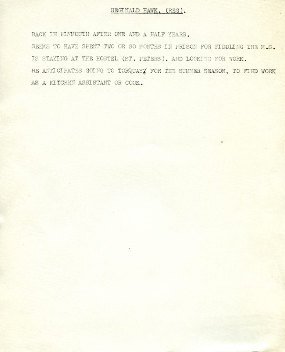 item 26 REGINALD HAWK. (REG). 257 x 205 mm typed sheet