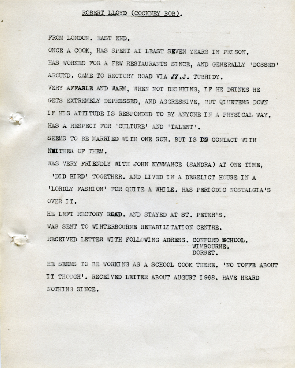 item 42 ROBERT LLOYD (COCKNEY BOB). 257 x 205 mm typed sheet
