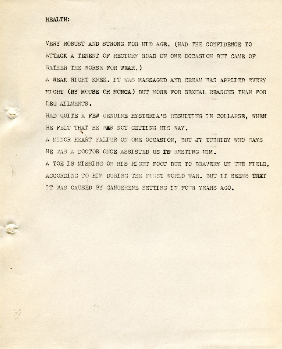 item 65 HEALTH: SYDNEY SMITH. (SID). 257 x 205 mm typed sheet