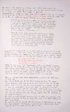 As part of the 1979 Project on Old Age, Lenkiewicz compiled a large body of illustrated notes bound into an A3 folio using a simple method of a glued binding in hardboard covers. The cover is formed from the exhibition poster. There are 230 pages in all. The paper material varies between cartridge paper and blank newspaper, with some inserts of short quotations.
