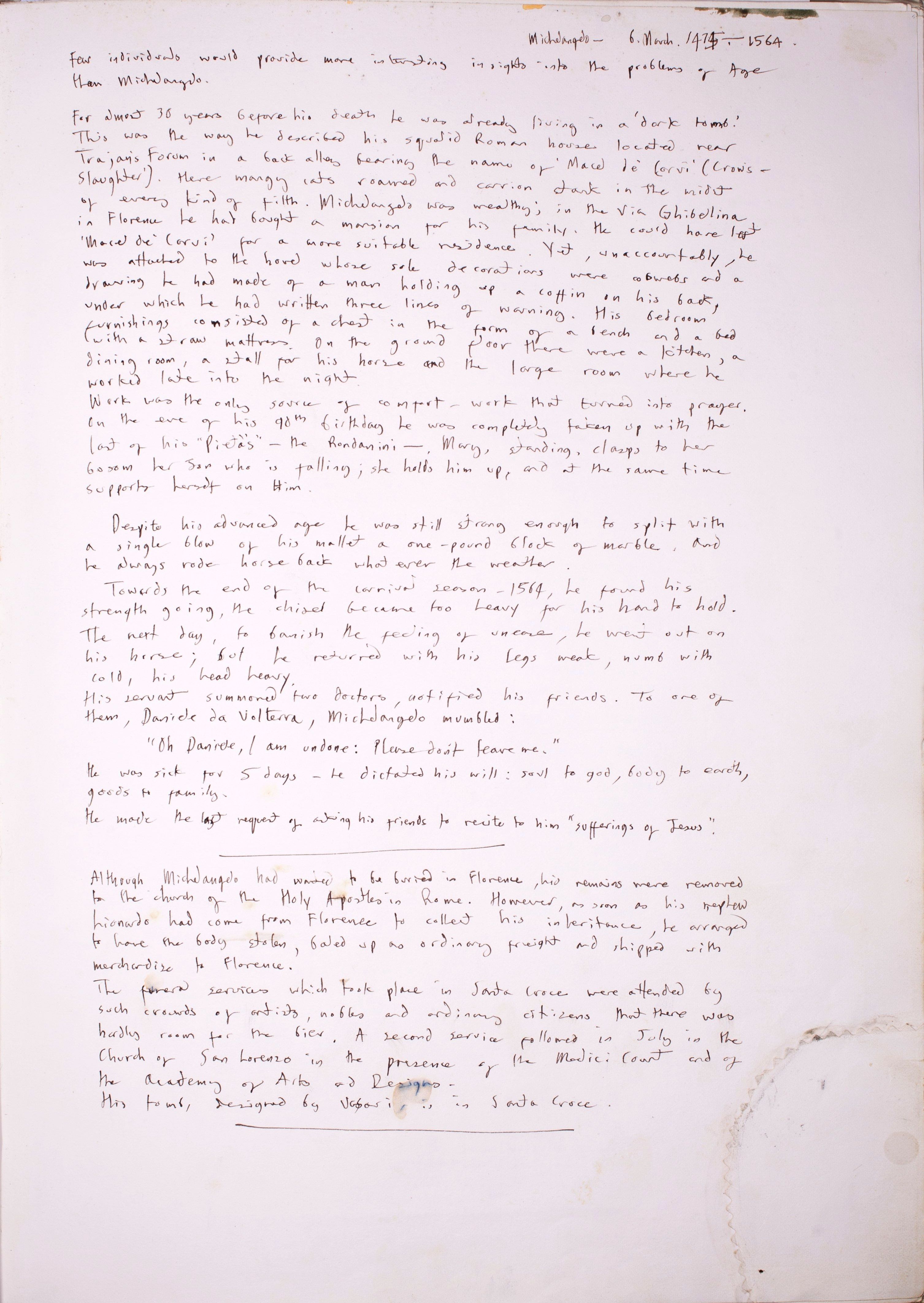 p15. Notes on: Michelangelo 1475-1564.