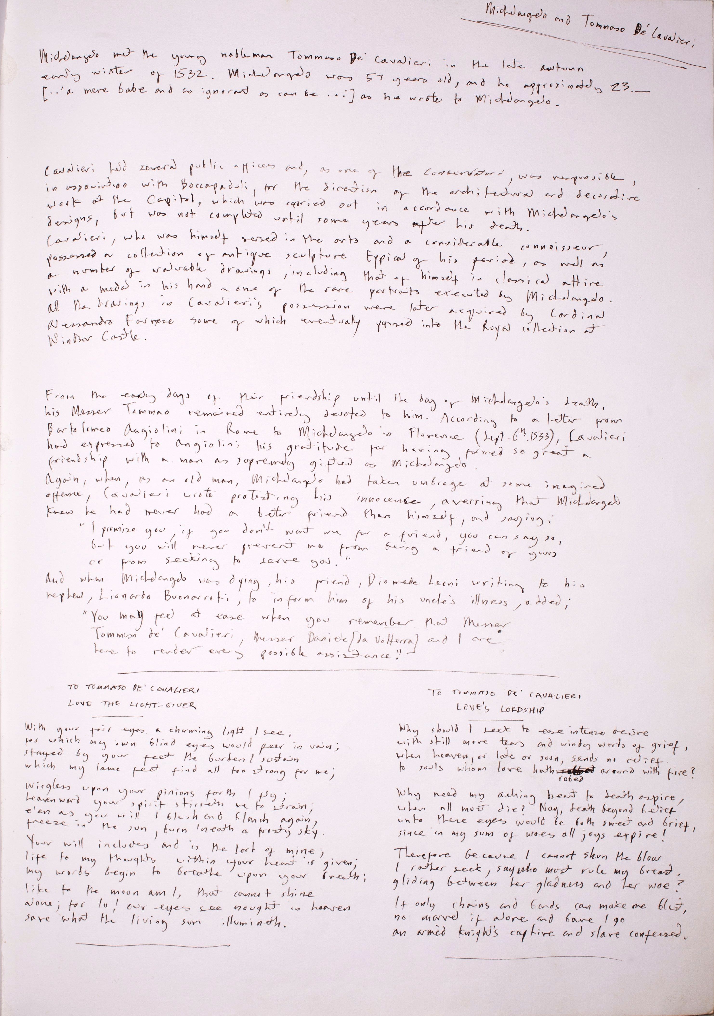 p18. Notes on: Michelangelo and Tommaso dei Cavalieri.