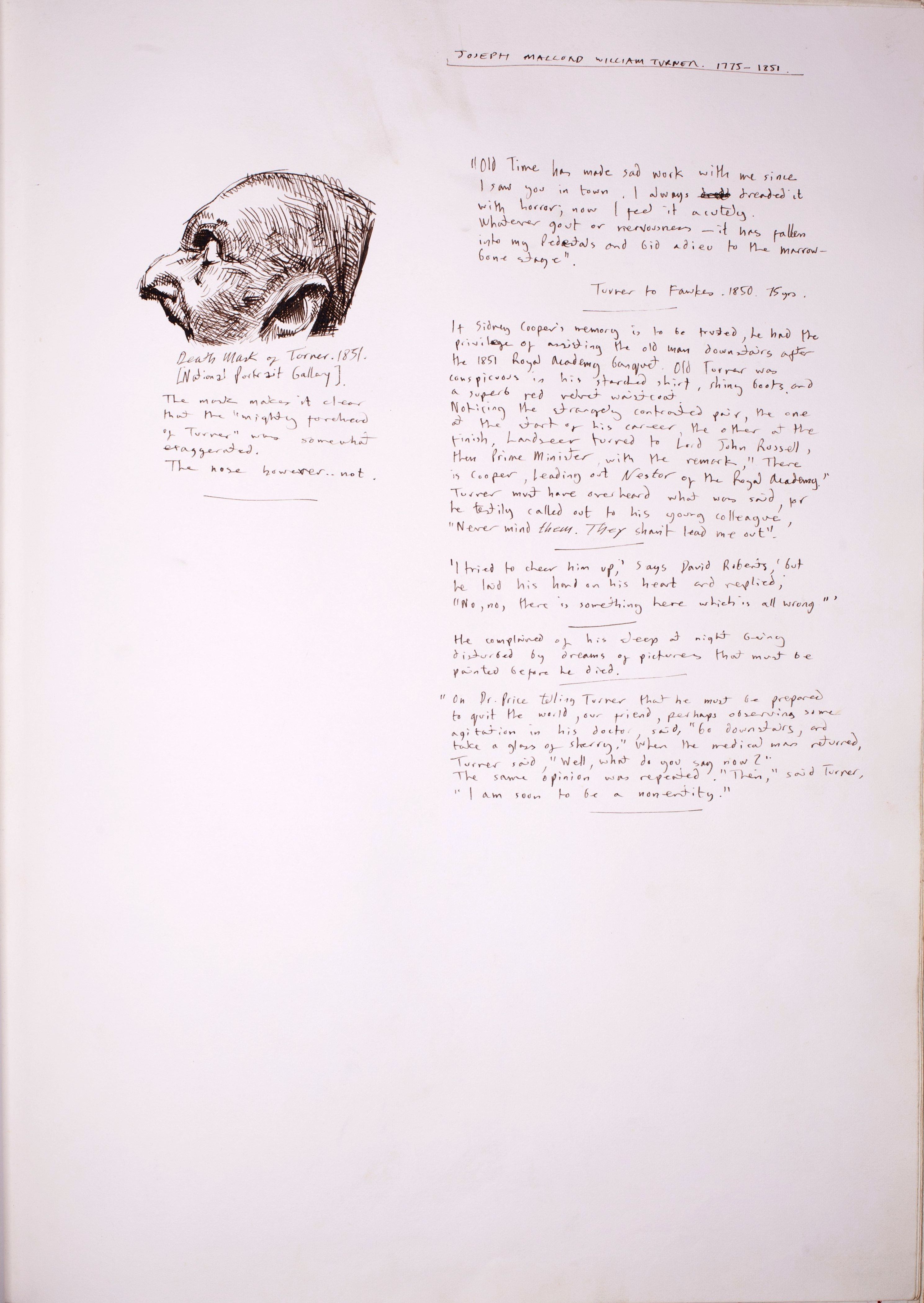 p34. Illustration & notes: J.M.W Turner 1775-1851 - death mask.