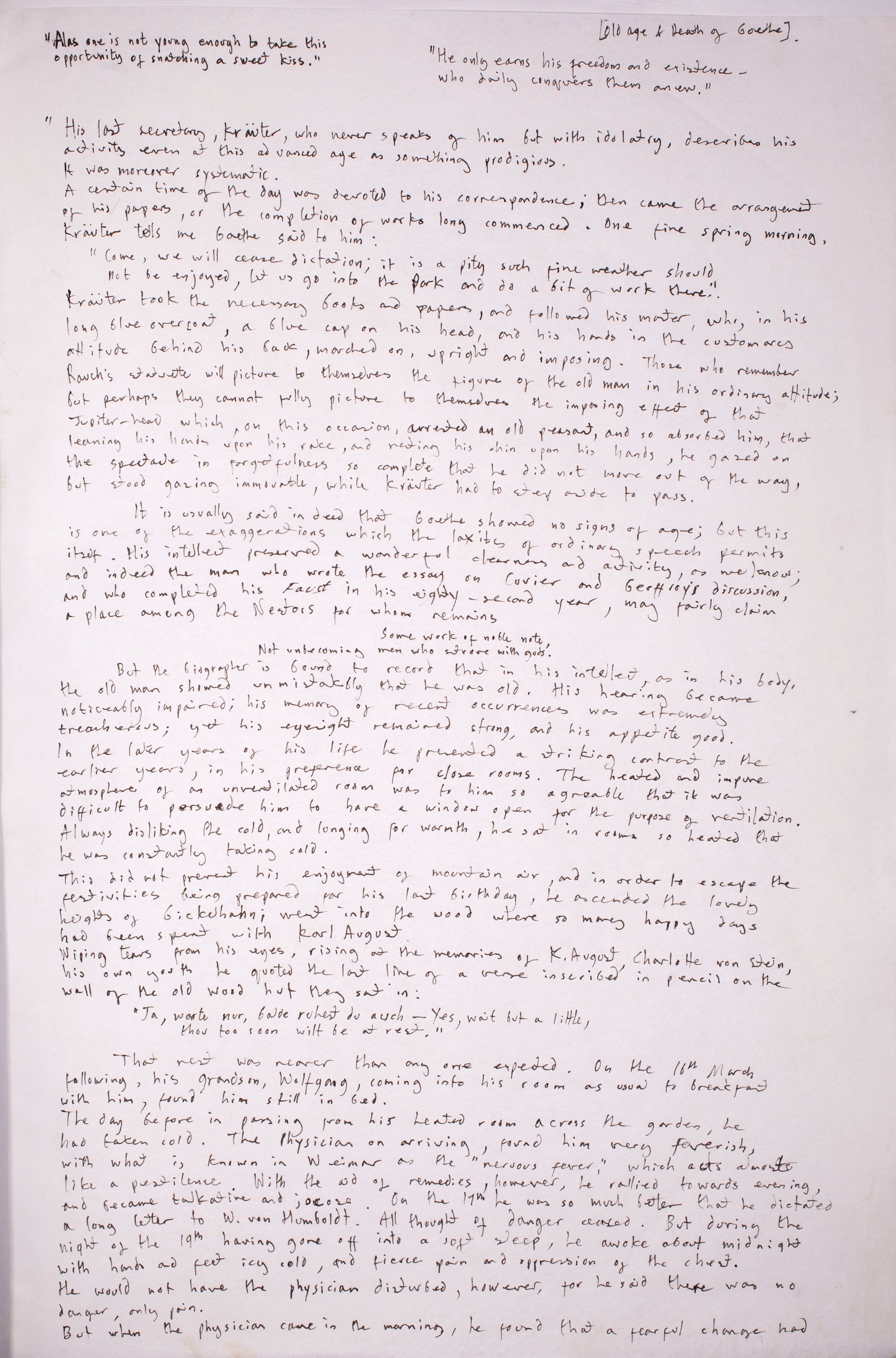 p70. Notes on: Old Age and death of Goethe.