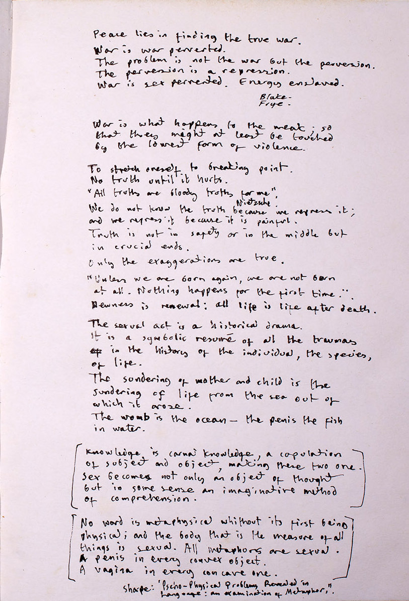 Knowledge is carnal knowledge, a copulation of subject and object, making these two one. Sex becomes not only an object of thought but in some sense an imaginative method of comprehension.