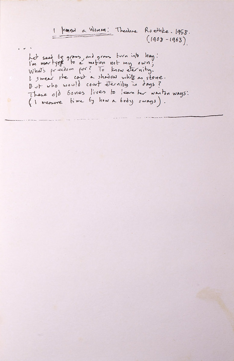 I knew a woman: Theodore Roethke. 1958.