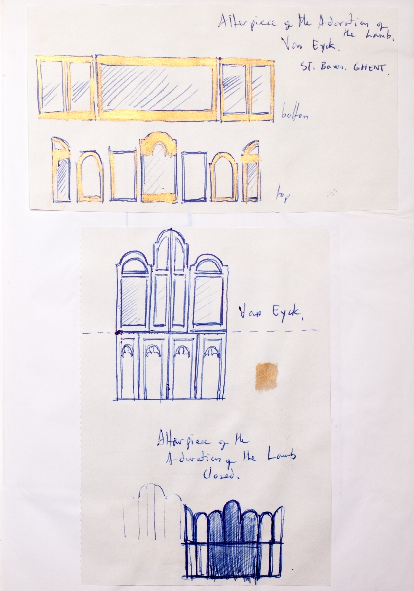Love & Romance Project Notebook, 1975Altar piece of The Adoration of the Lamb. Van Eyck. St. Bavon, GHENT. Van Eyck. Altar piece of The Adoration of the Lamb closed.