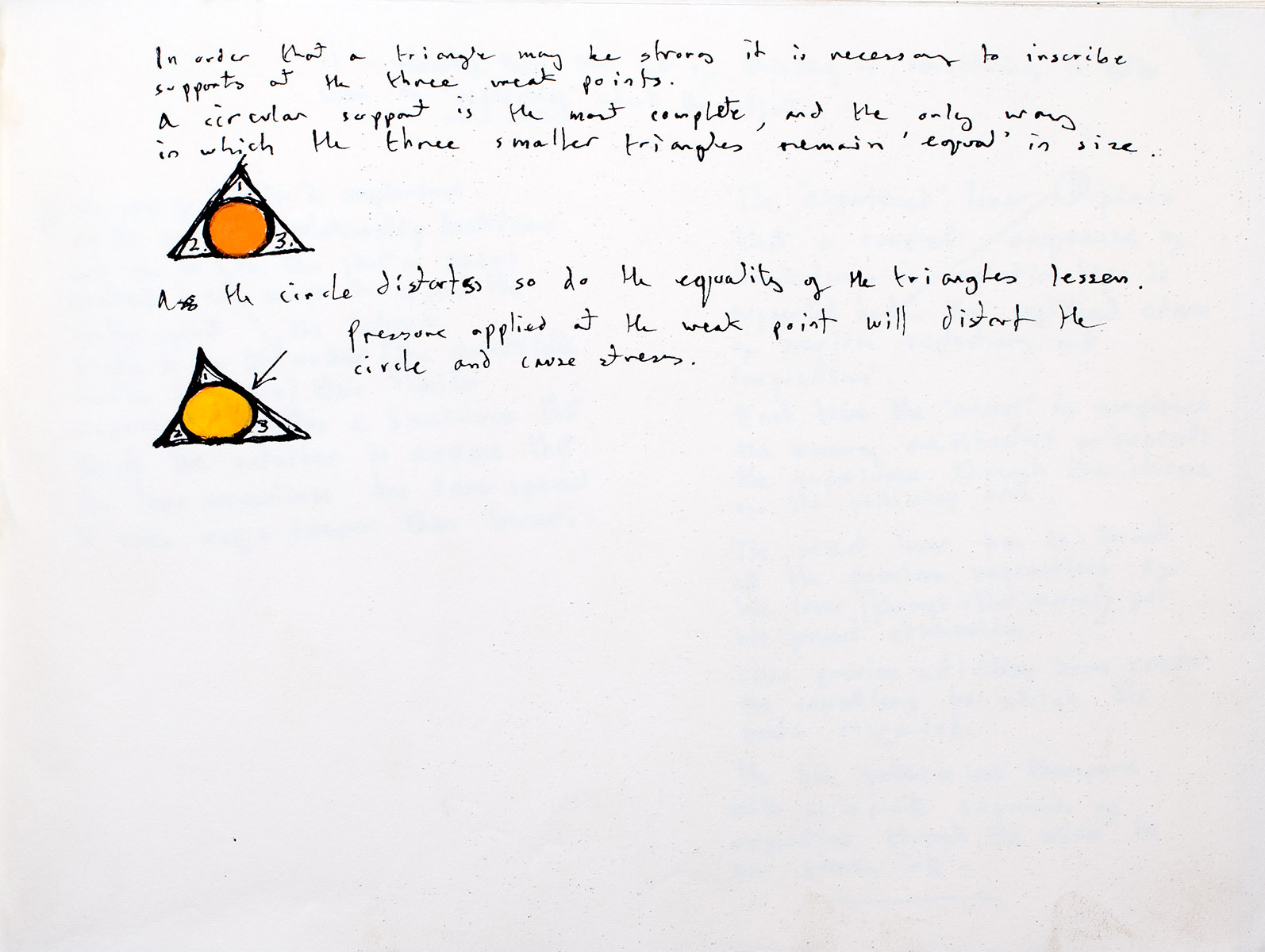 In order that a triangle be strong it is necessary to inscribe supports at the three weak points.