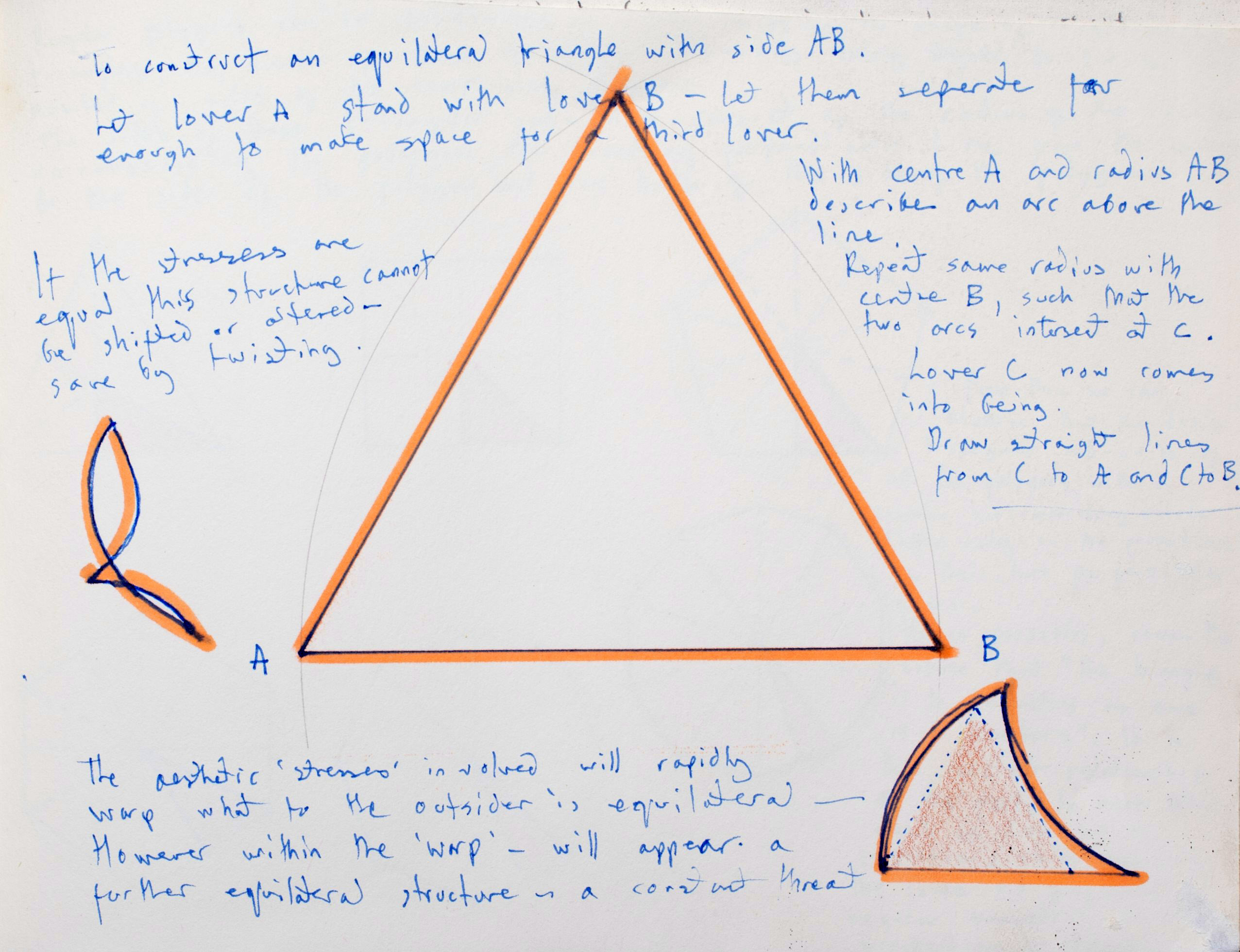 The aesthetic ‘stresses’ involved will rapidly warp what to the outsider is equilateral. However, within the ‘warp’ – will appear a further equilateral structure  – a constant threat.