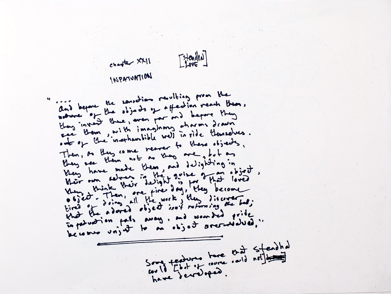 “…And before the sensations resulting from the objects of affection reach them, they invest these, even far and before they see them, with imaginary charms drawn out of the inexhaustible well inside themselves. Then, as they come nearer to these objects, they see them not as they are, but as they have made them, and delighting in their own selves in the guise of an object, they think their delight of for that loved object. Then, one fine day, they become tired of doing all the work, they discover that the adored object isn’t returning the ball; infatuation falls away, and wounded pride becomes unjust to an object overvalued.”