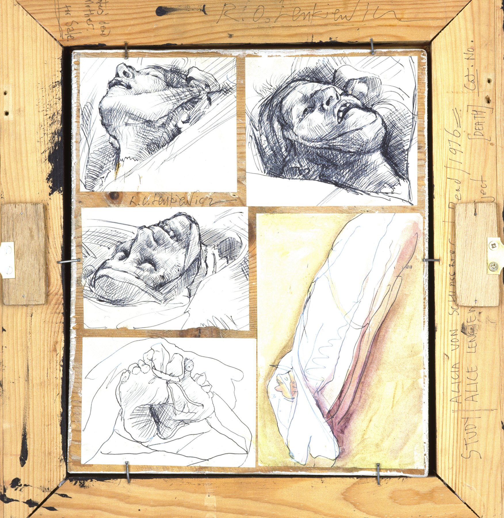 Note: these sketches were done at the mortuary where the painter's mother's body lay. They are affixed to the rear of the painting Study of the Painter’s Dead Mother (1977).