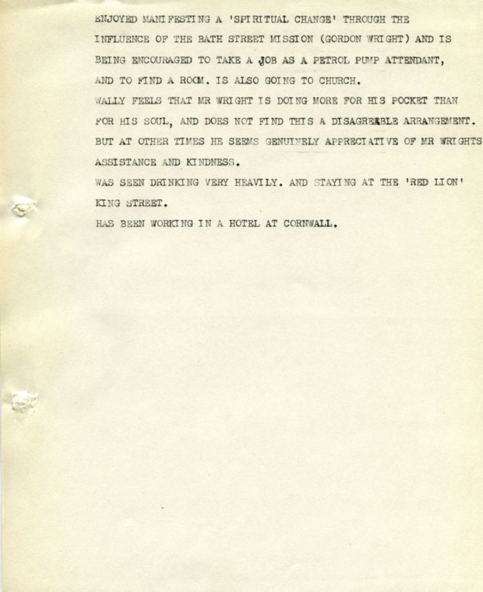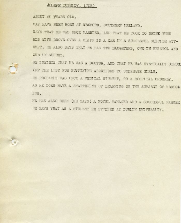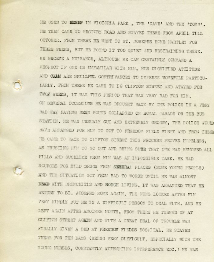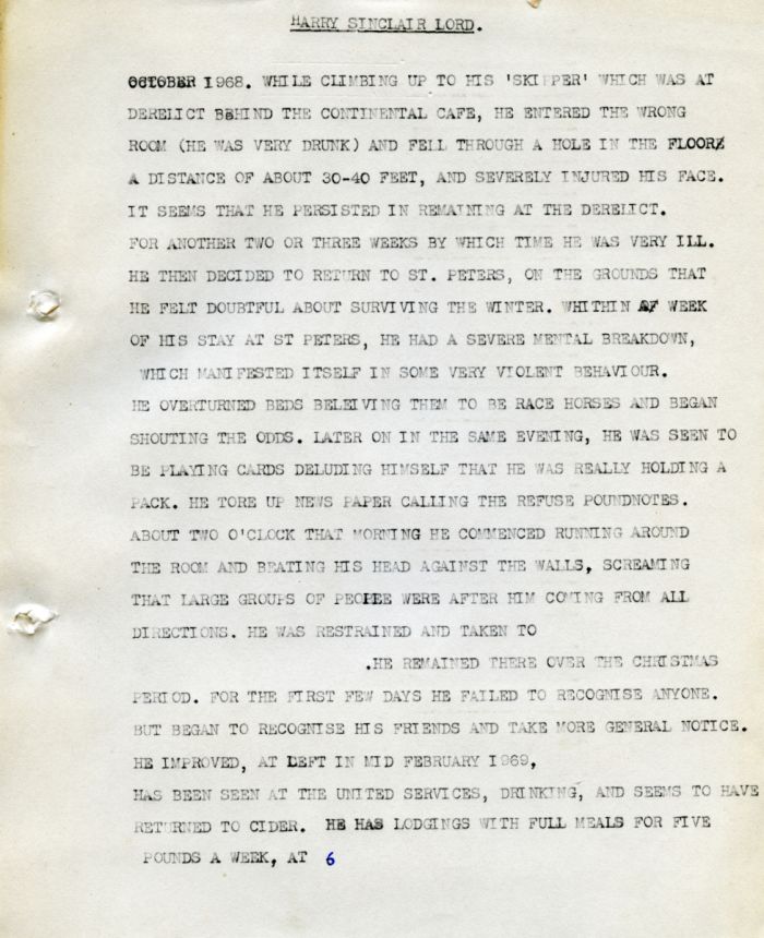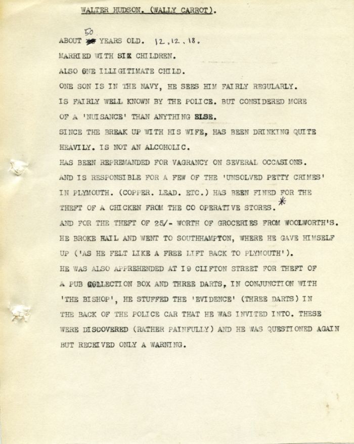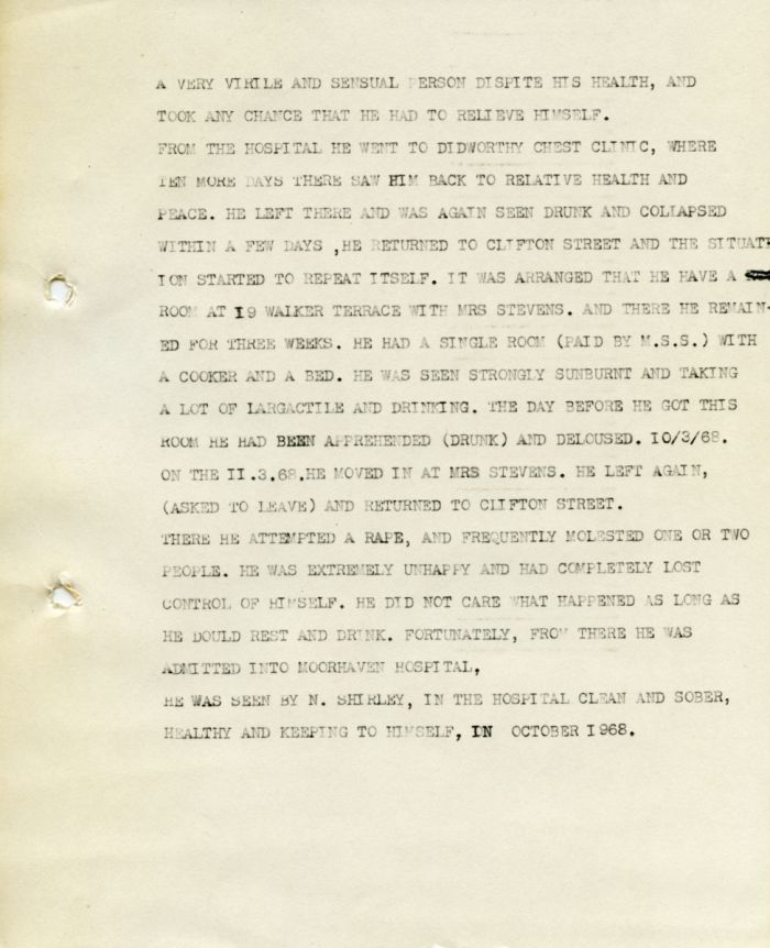 Lenkiewicz began compiling informal dossiers on his dossers, trying to keep track of their magistrate’s court appearances, stays at Moorhaven Hospital, or difficulties at the local Salvation Army hostel, from which many had been ejected for poor behaviour. And of course, he drew and painted them.