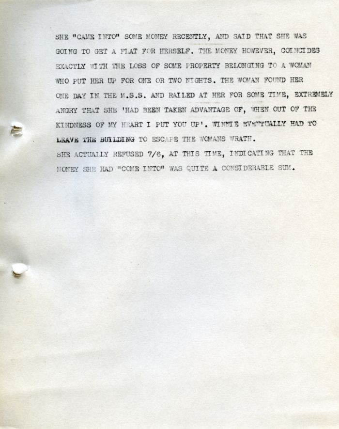 Mouse recalls: ‘There would be vagrants in the bathroom, under the stairs, in the airing cupboards.’ Monica remembers that: ‘But these weren’t young homeless people – they were elderly men who had lived rough a long time, plus one woman; dear old Winnie.’